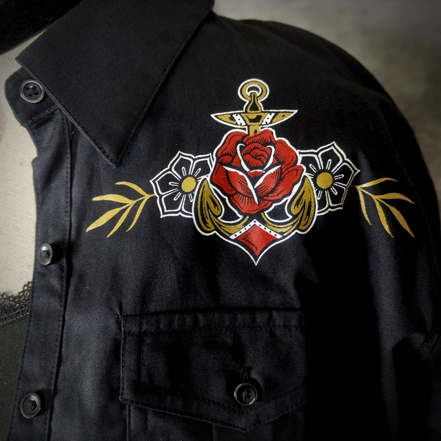 Chemise style Pin up "Ancre & Fleurs" Black